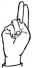 На ћирилици написано ВУКОСЛАВ БОГОЈЕВИЋ састоји се из 17 слова [?]. Исписано ћириличном једноручном азбуком за глувонеме: